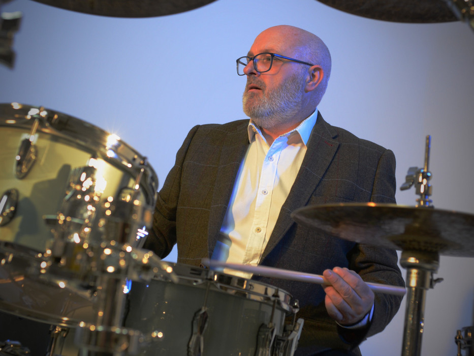 Simon teaches and performs in equal amounts is equally passionate about both facets of his drum kit performing and teaching career.